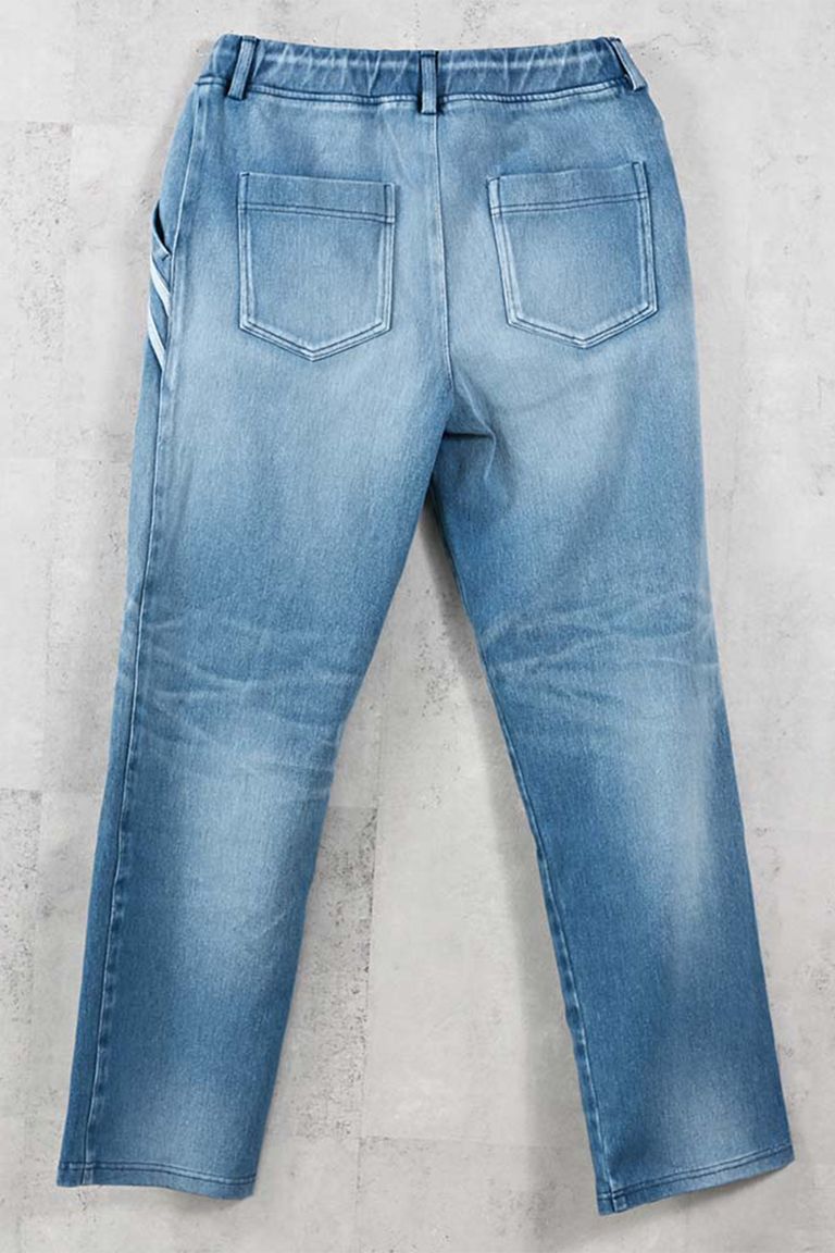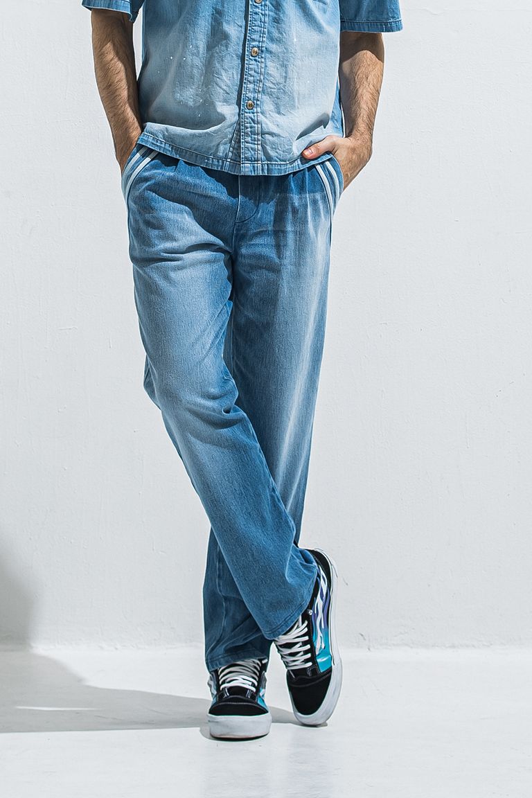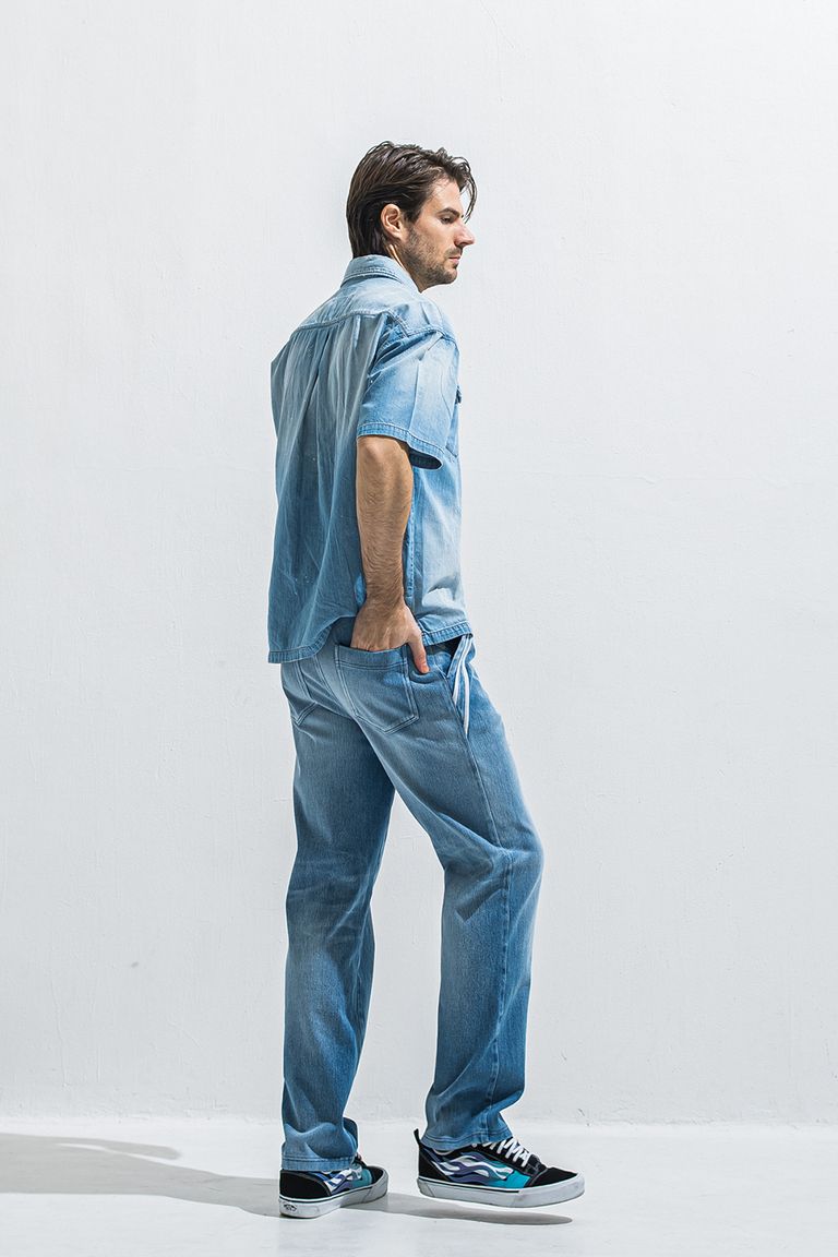 定番エッジセミワイドワンタックイージーパンツのジャージデニム。