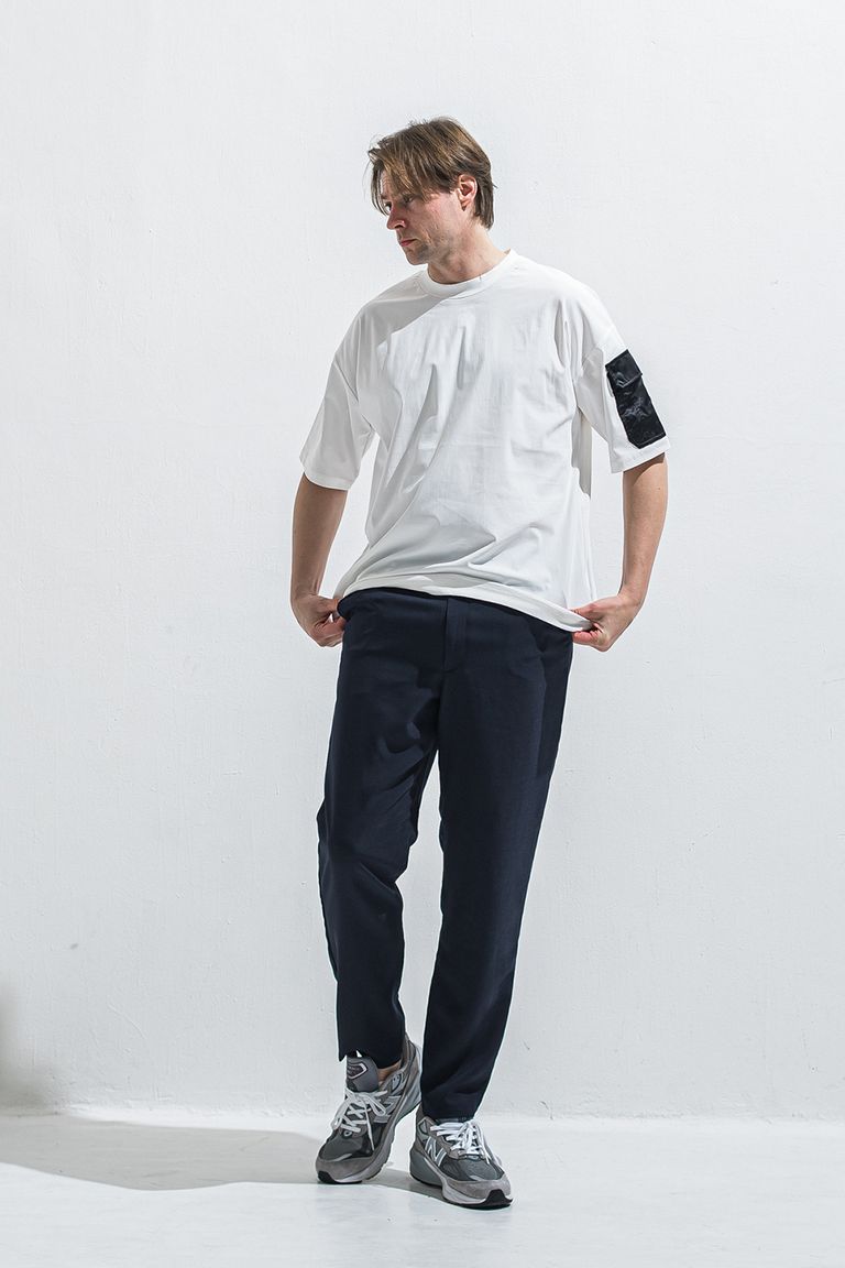ヒップのカーブや腰回りのパターンに拘り、大人の余裕と程よい抜け感をイメージしたワイドテーパードシルエット。