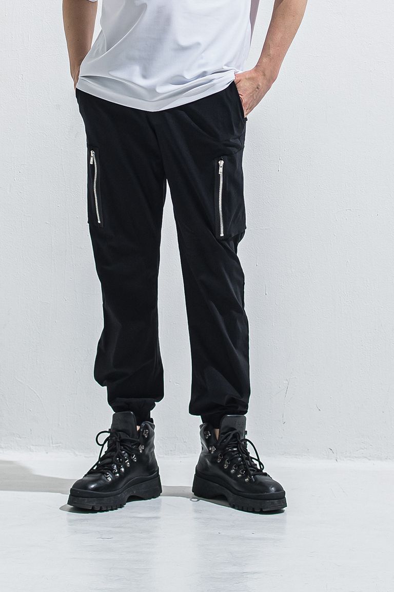カジュアルな裾は切り返しのゴム仕様。ヒップのカーブ、腿周りのテーパードラインなどパターンメイクに拘った美シルエットです。