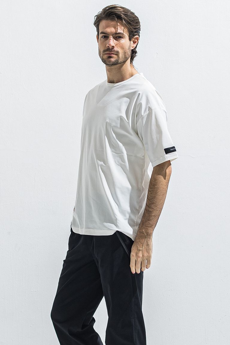 スポーティーで素材とシルエットの良さで見せる、無地のナイロンオーバーTシャツ。