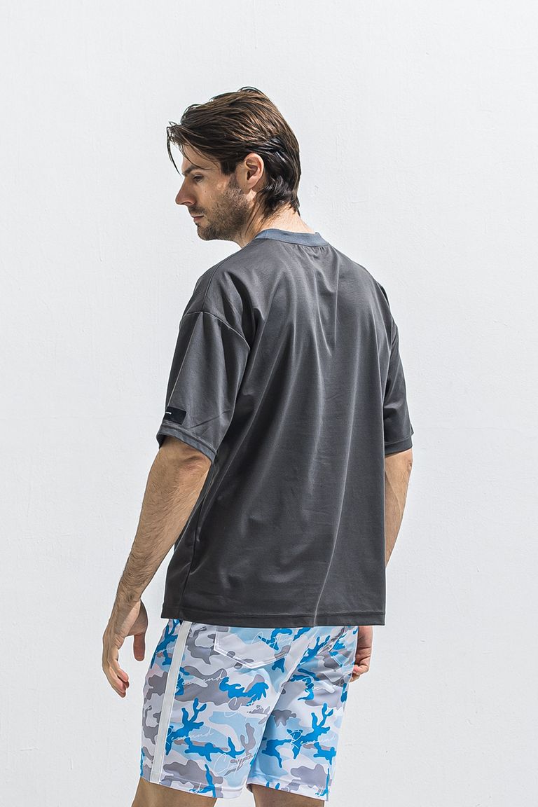 表地をコンパクトコットン、裏側は高機能ナイロンメッシュのリバーシブル素材を使用した、シンプルで素材を活かしたオーバーサイズTシャツ。