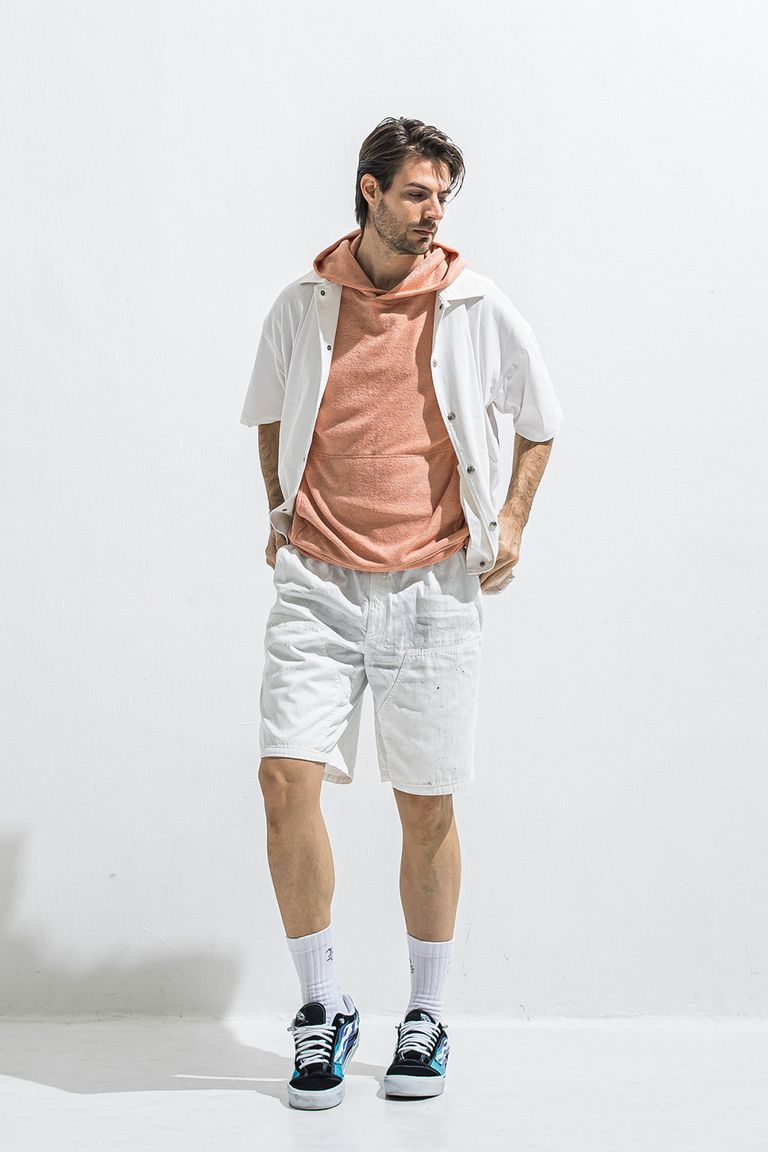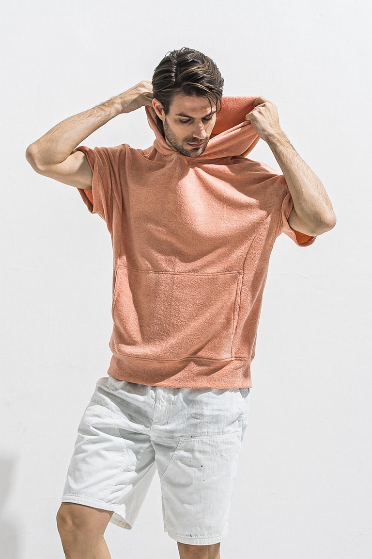 PILE HALF HOODIE / オーバーサイズ ハーフスリーブ パイル フーディー
