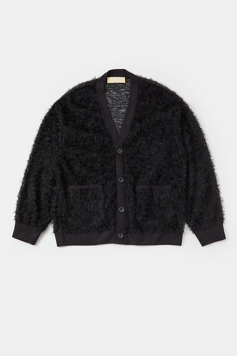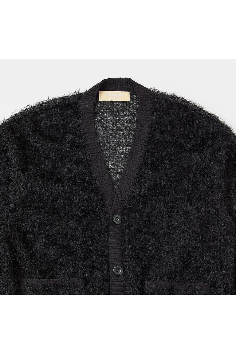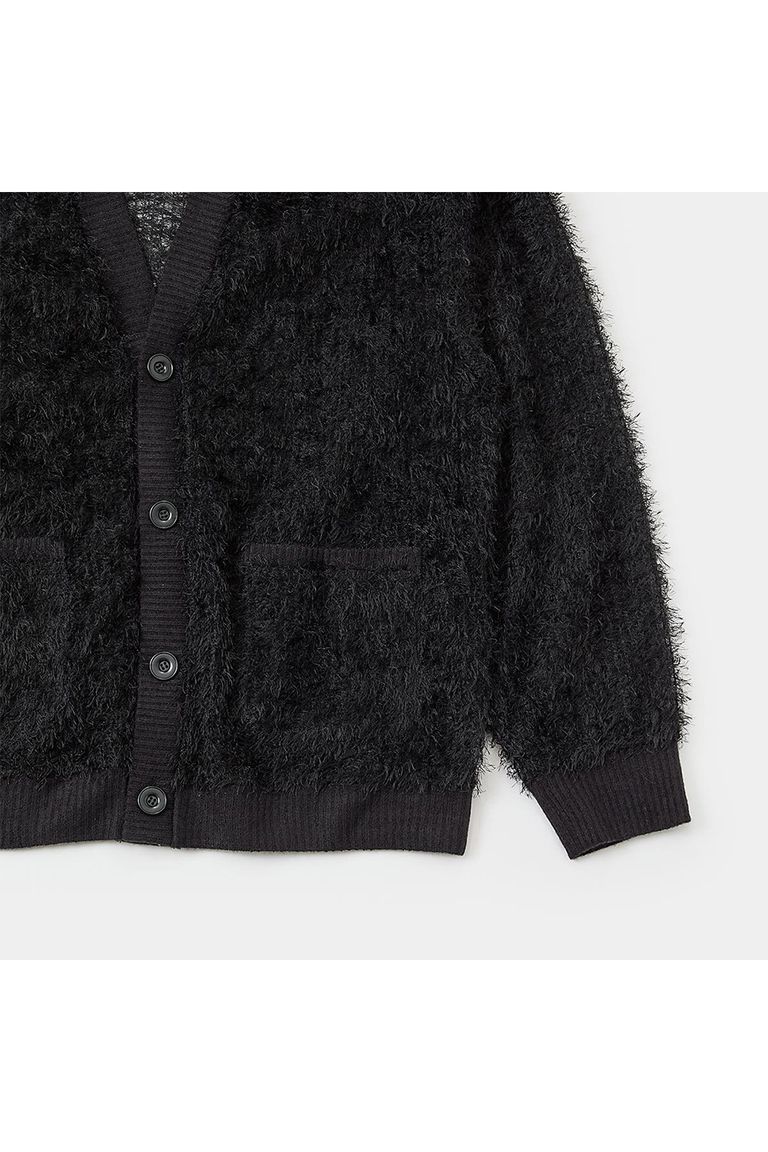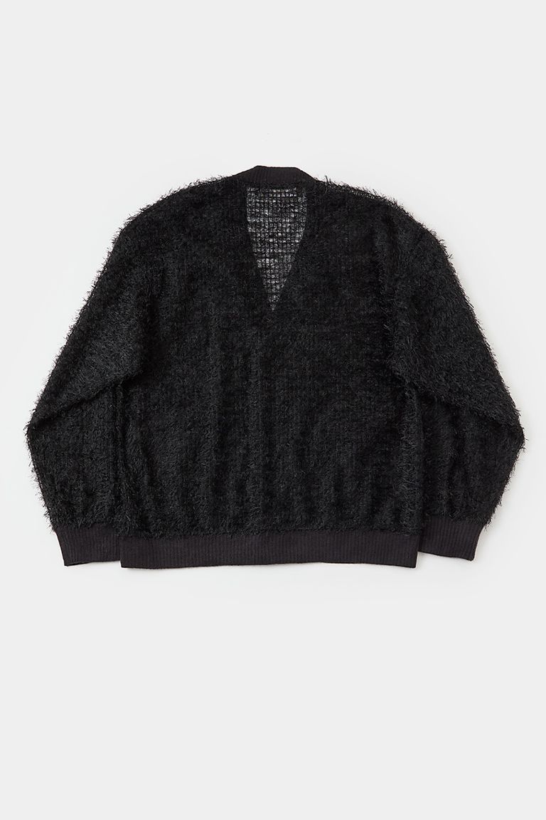 毛足の長い粗野な風合いのレース素材を使用したシアーカーディガン。