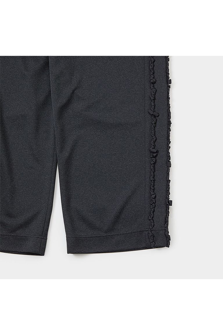 コード刺繍で二重のサイドラインを表現したトラックパンツ。