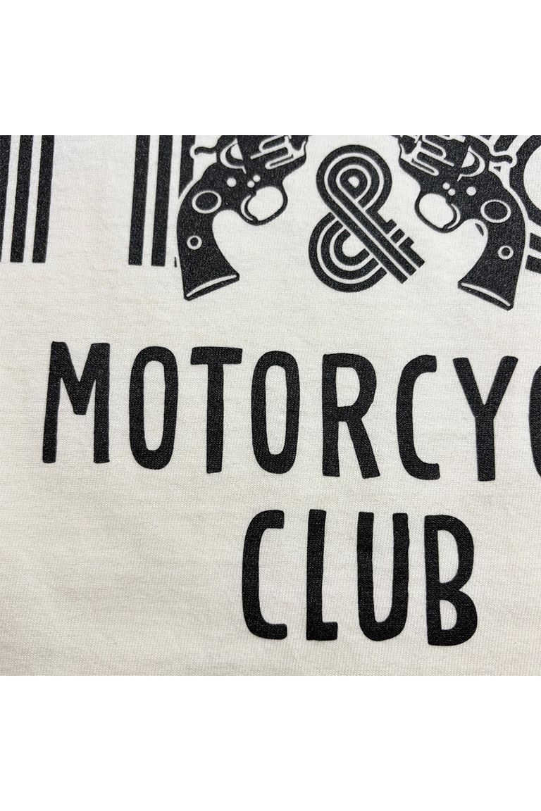 胸とバックにMOTOR CYCLE CLUBのコラボレーションアイコンがプリントされる。