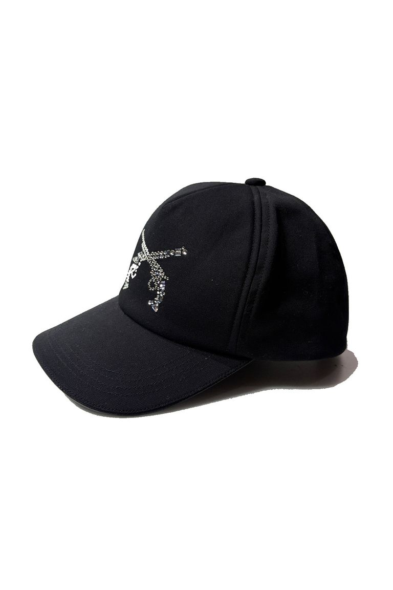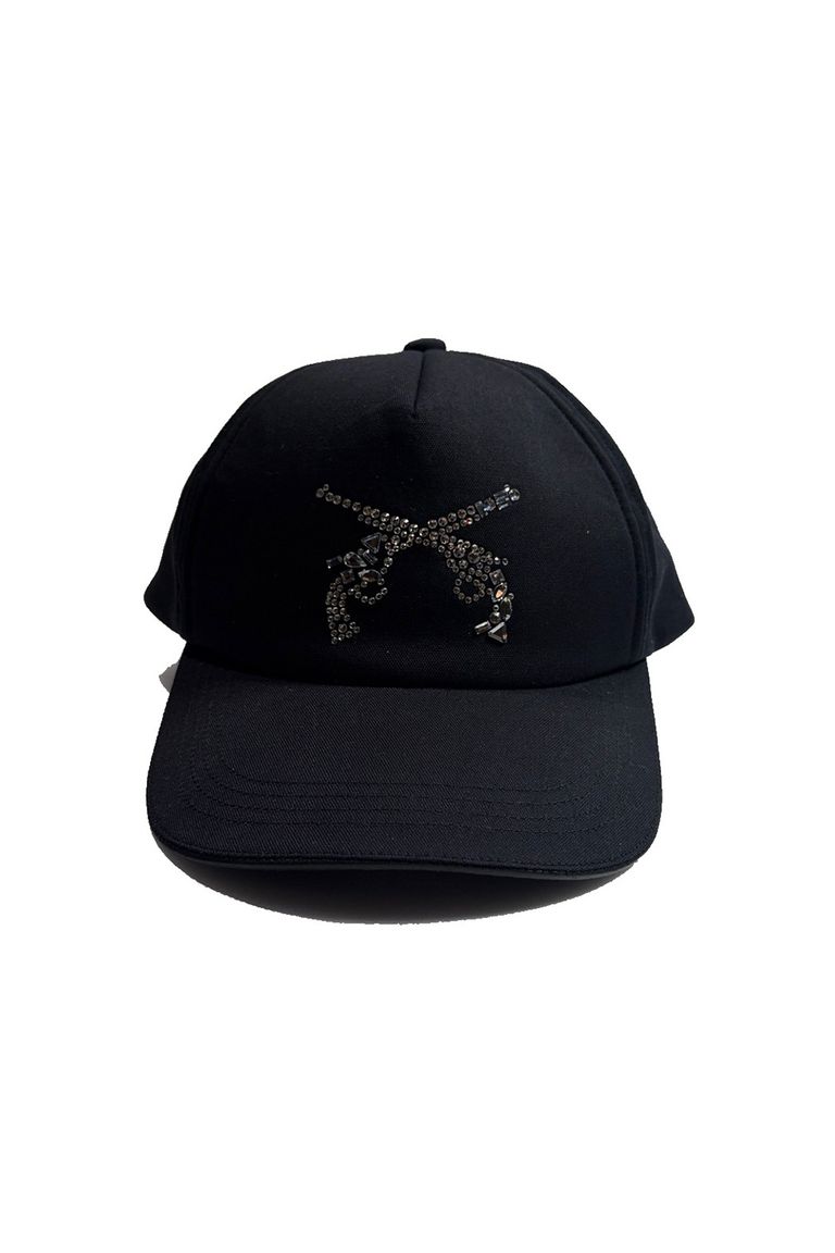 SWAROVSKI®️でモザイク調のクロスガンを表現したベースボールキャップ。