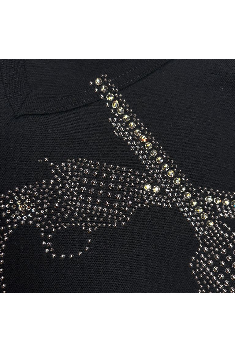 襟にかかるようにメタルとSWAROVSKI®️クリスタルのクロスガン。