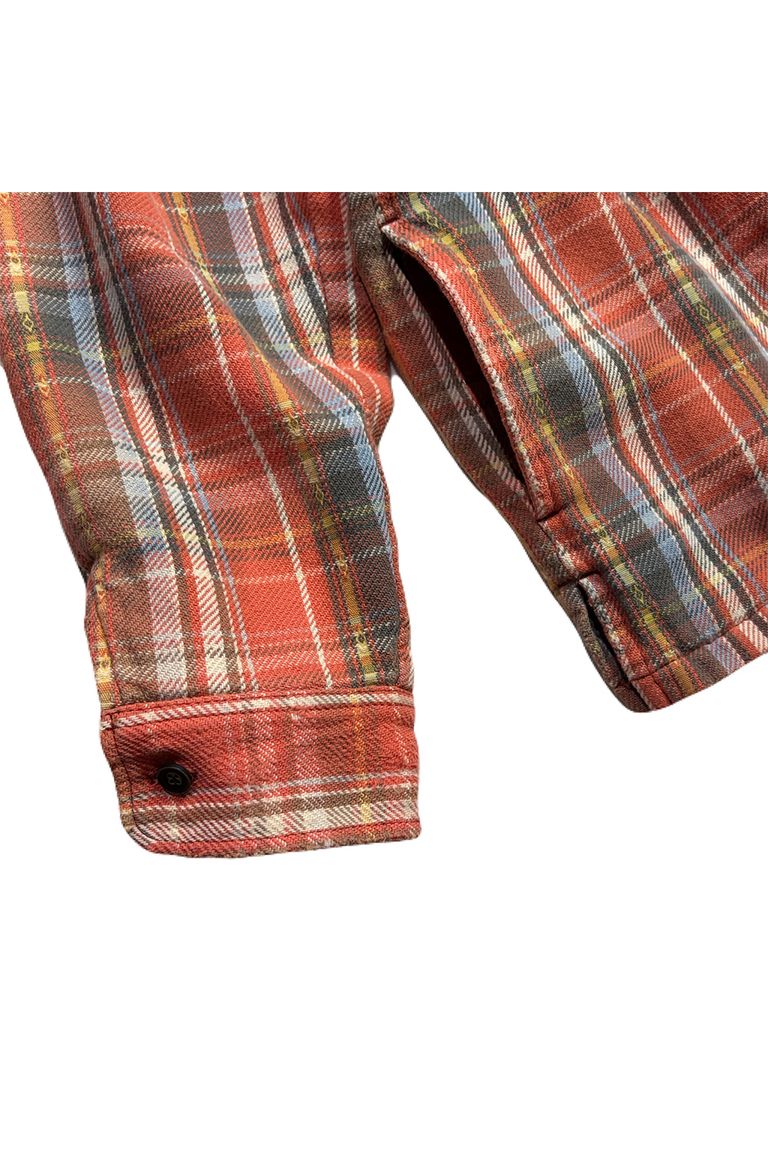 薄い保温シート入りのアウターライクなチェックシャツ。