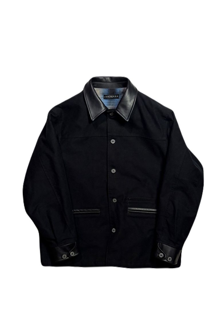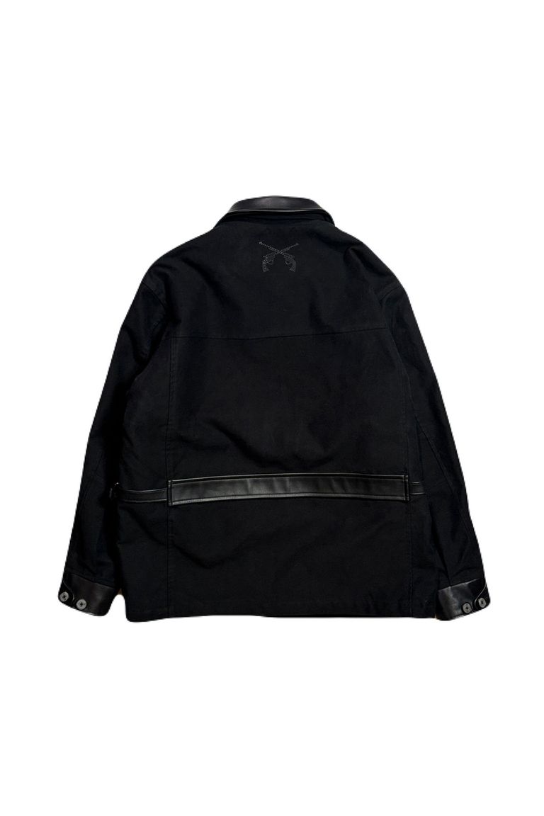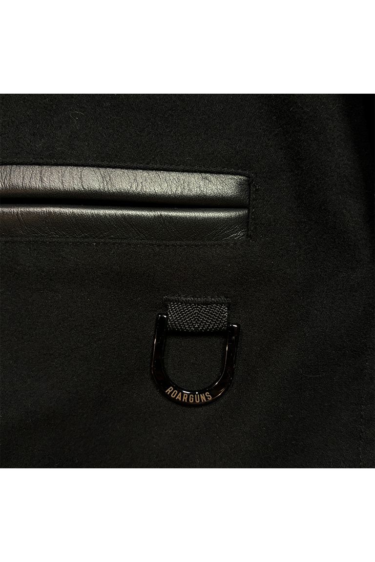 襟やカフス、ベルトなどにはレザーを使用。