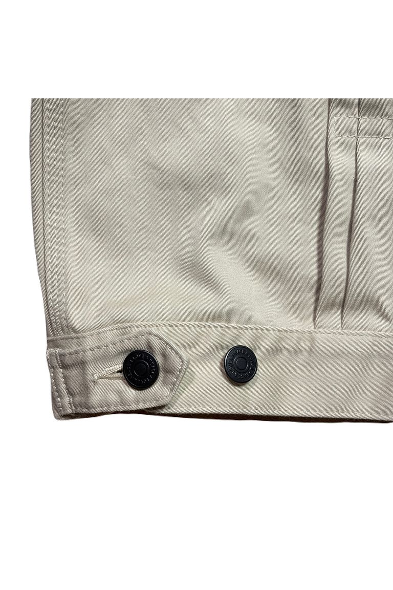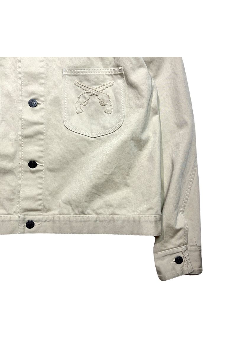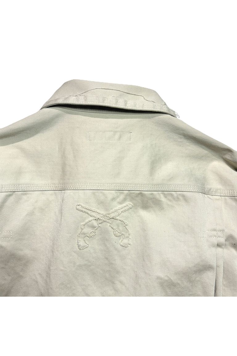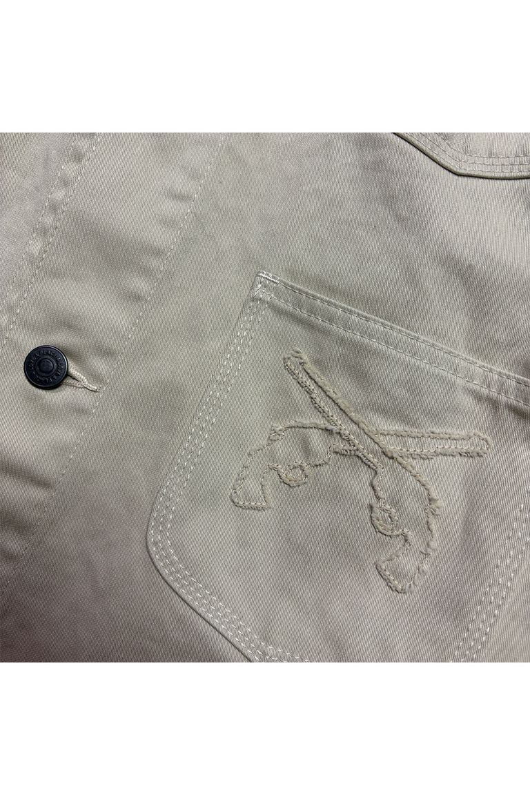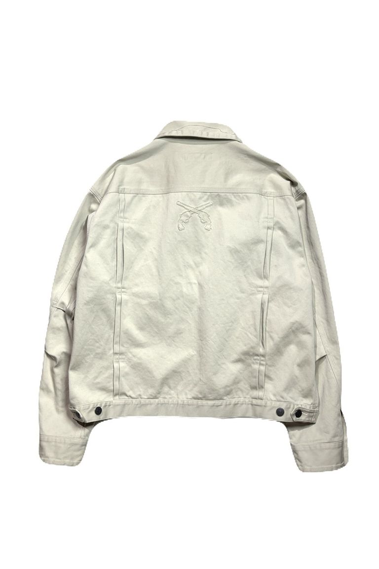 ヴィンテージのデニムジャケットにみられるフロントのプリーツをバックに配して機能性を持たせた。