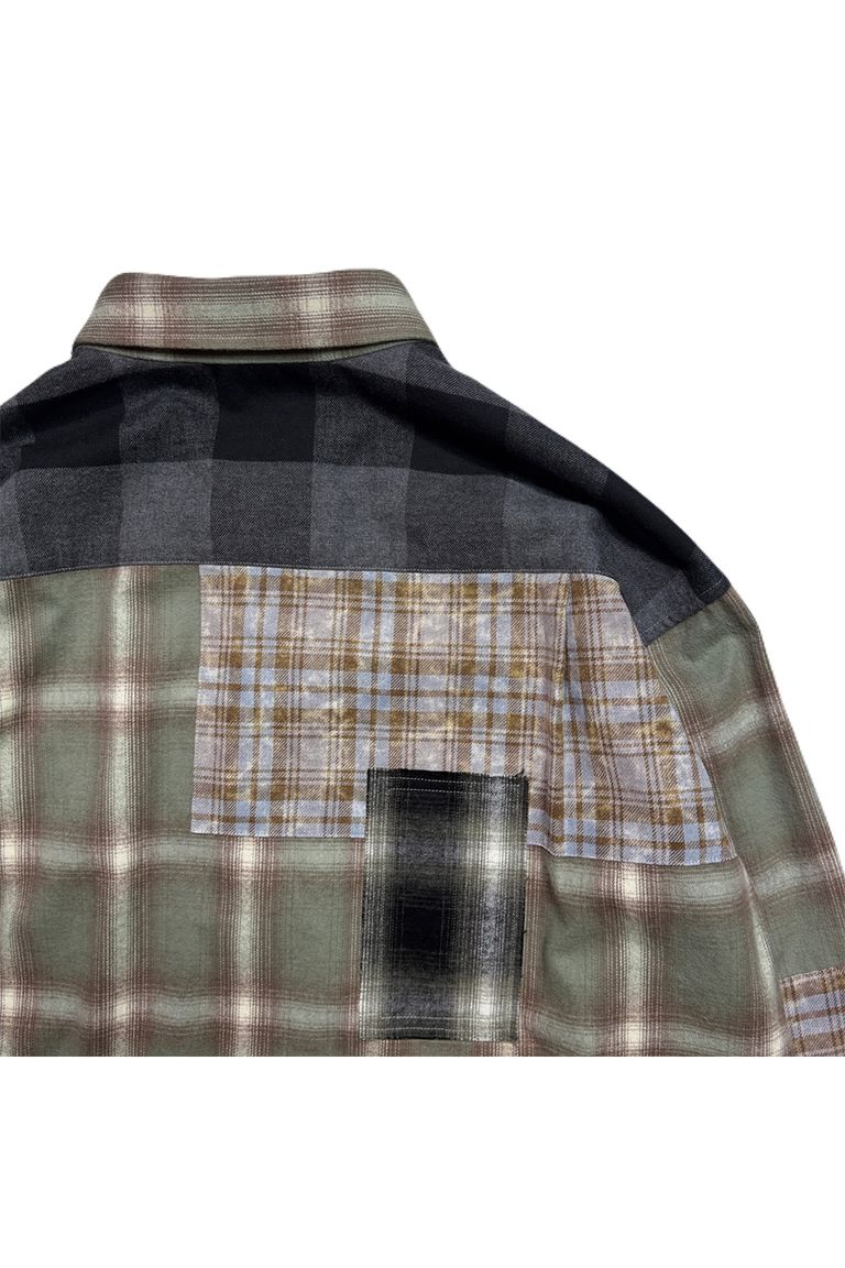 ブロックチェックやタータンチェックを合わせたミックスシャツ。