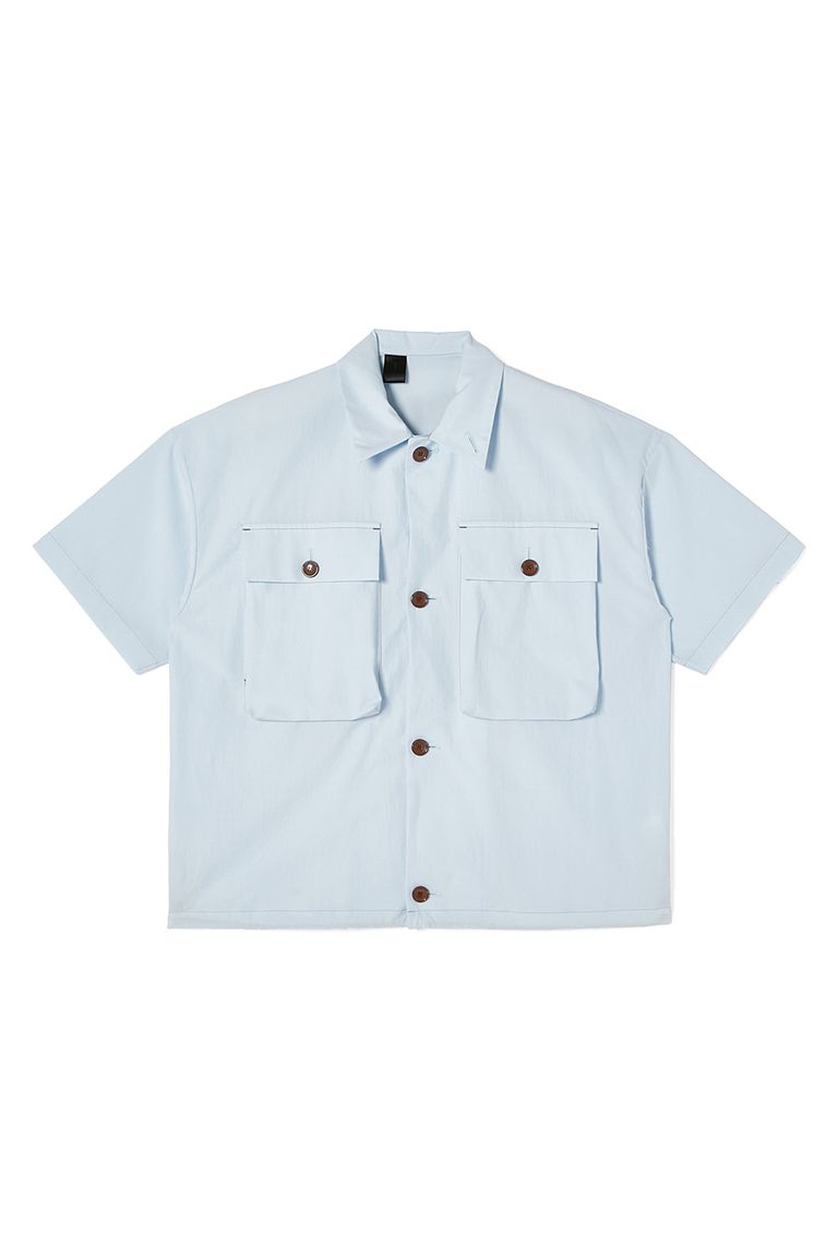 サファリジャケットから着想を得て製作したハーフスリーブシャツ。